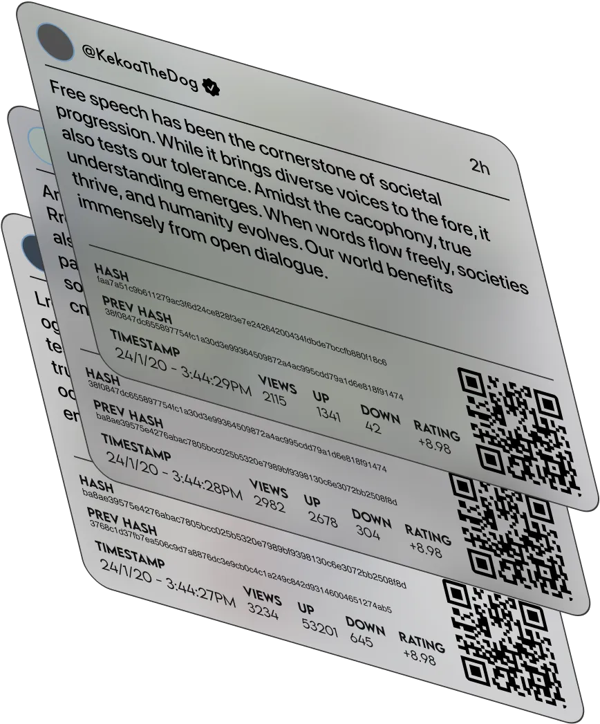 Every post is stored permanently on the blockchain, ensuring it can never be altered or deleted. Your words remain accessible forever, serving as lasting proof of what you said.